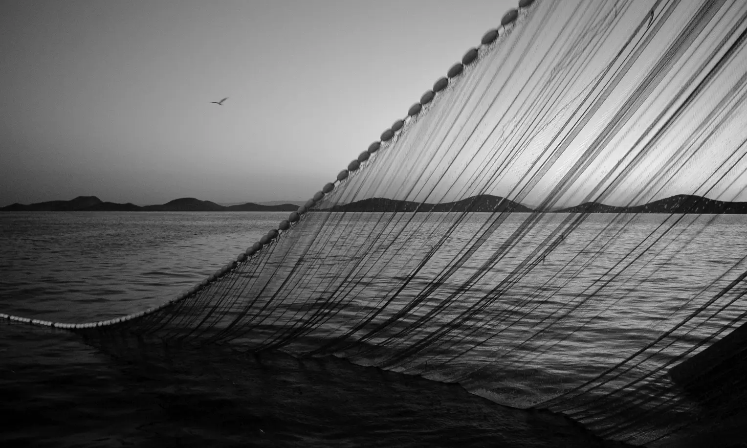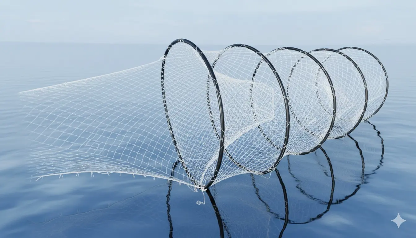 O unealtă de pescuit este o plasă mare cu un sac, utilizată pentru a aduna peștii din apă